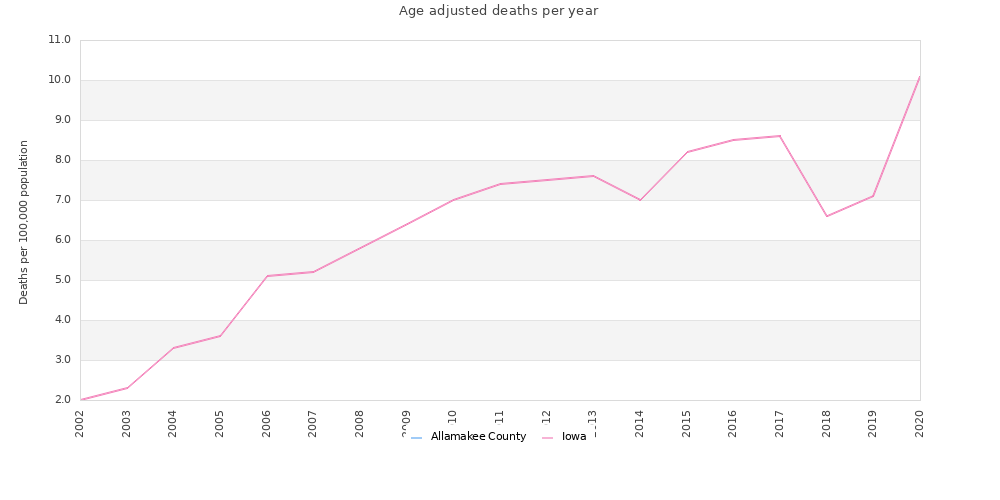 | Year | Deaths | Crude Rate | Age Adjusted Rate |