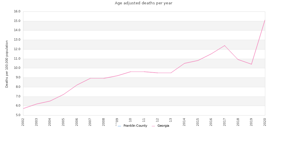 | Year | Deaths | Crude Rate | Age Adjusted Rate |