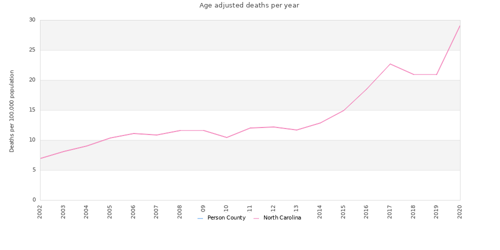 | Year | Deaths | Crude Rate | Age Adjusted Rate |